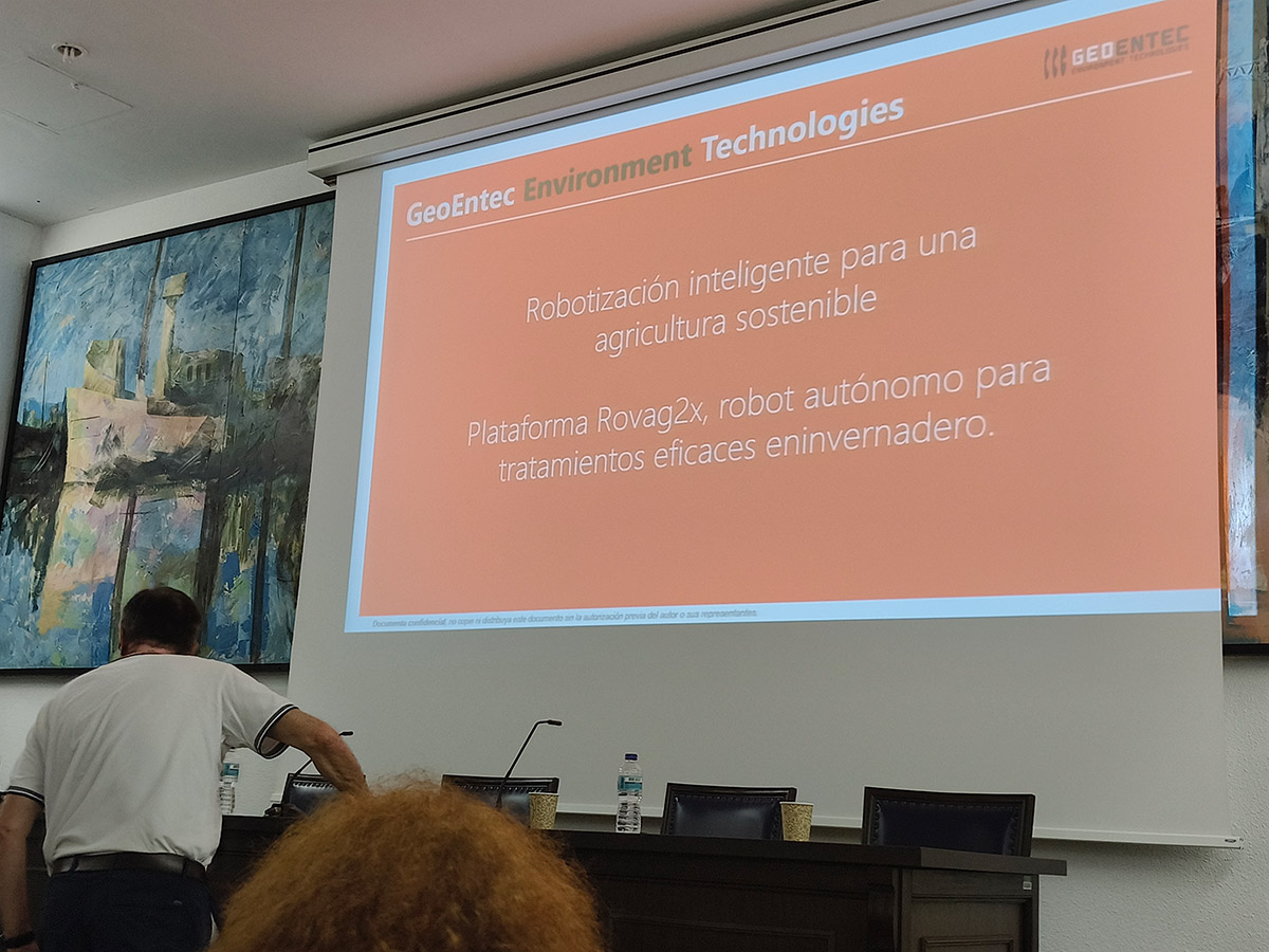 El Director General de GeoEntec, Jesús Vila, presentó la ponencia titulada “Robotización Inteligente para una agricultura sostenible” durante la jornada en que IFAPA difundió los resultados de sus ensayos de variedades de fresa durante la última campaña. 130 profesionales del sector de los frutos rojos participaron en la jornada.